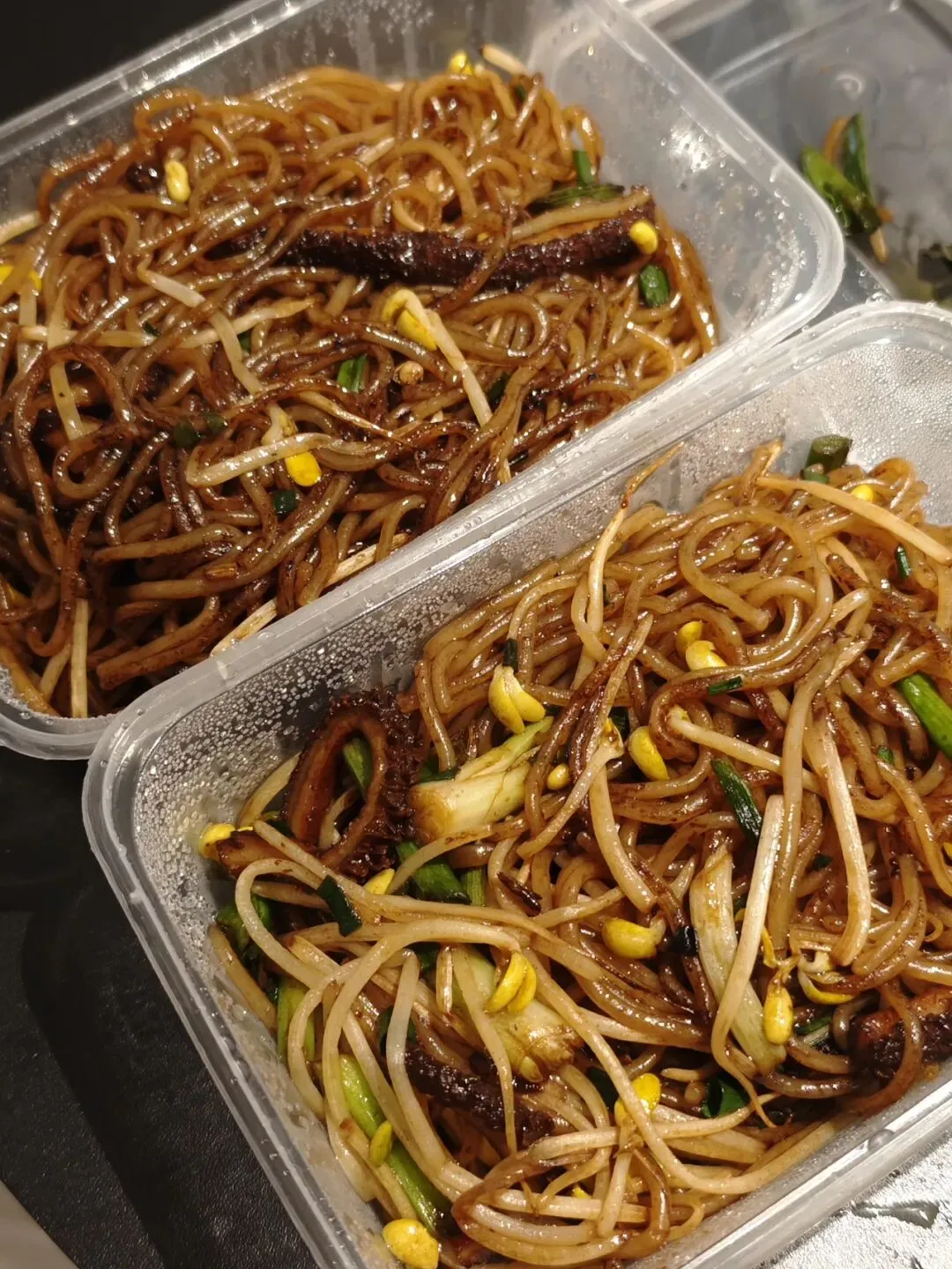 中午饭的时候点了炒粉的外卖,感觉有点踩雷不是很好吃。然后准备退房的时候还买了烧饼的外卖带去高铁站吃。真的很爱吃烧饼,这次除了点白糖烧饼我还点了个香辣牛肉味的,也好吃!对我来说不是狠辣~