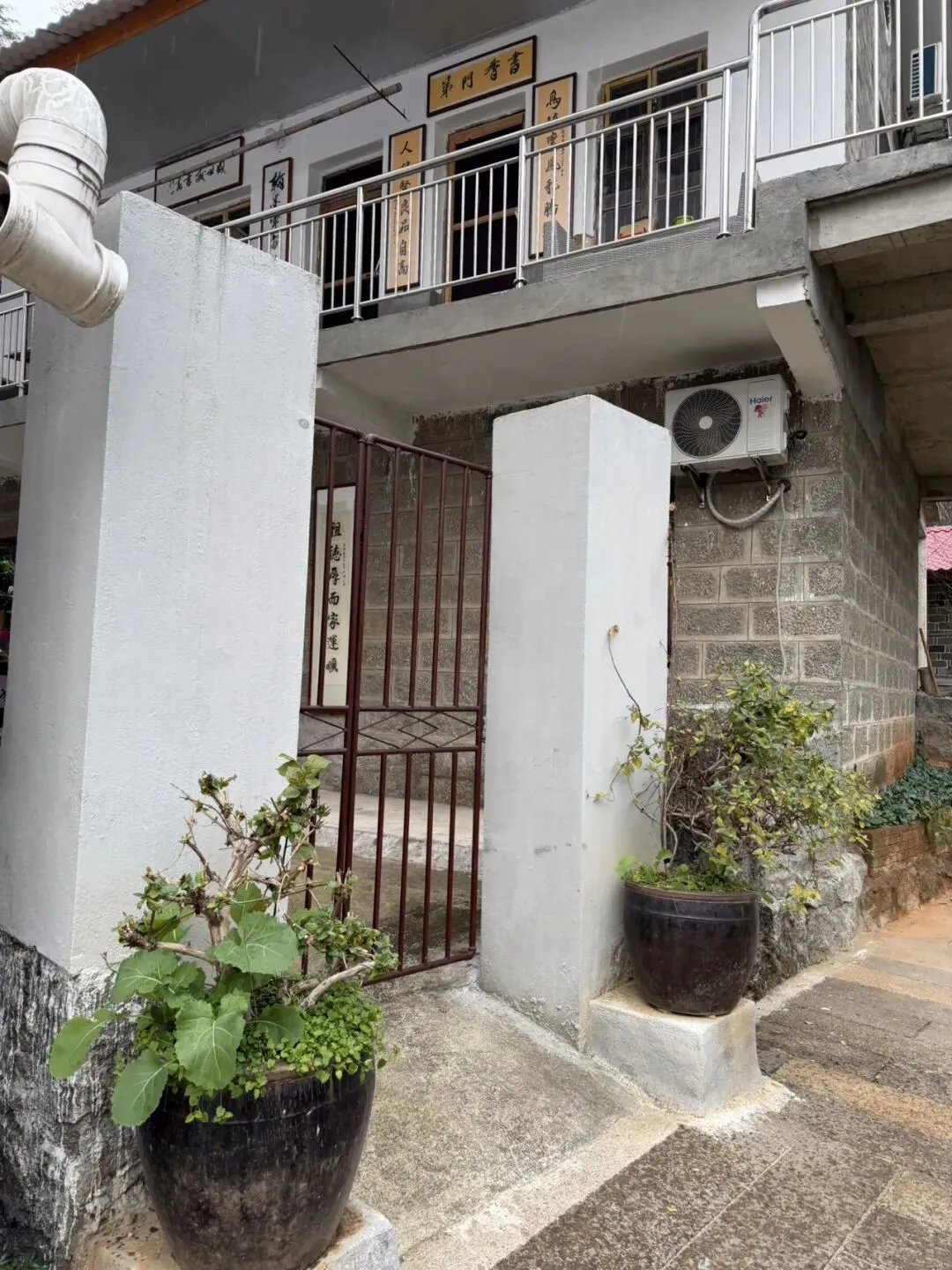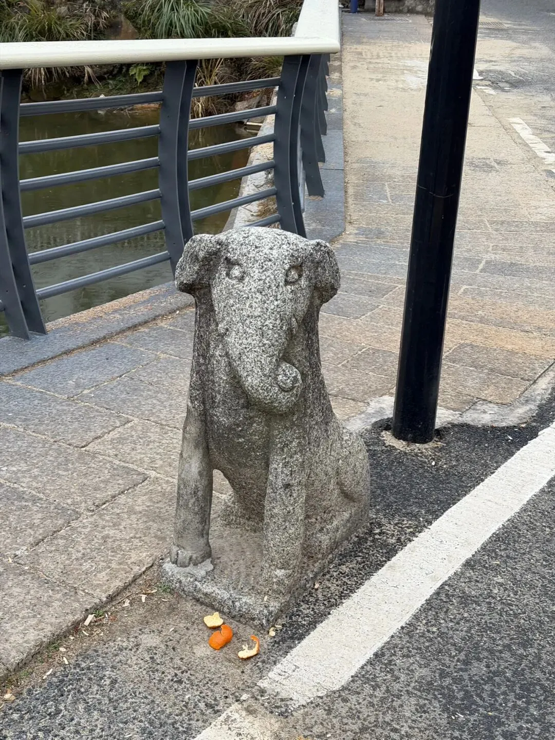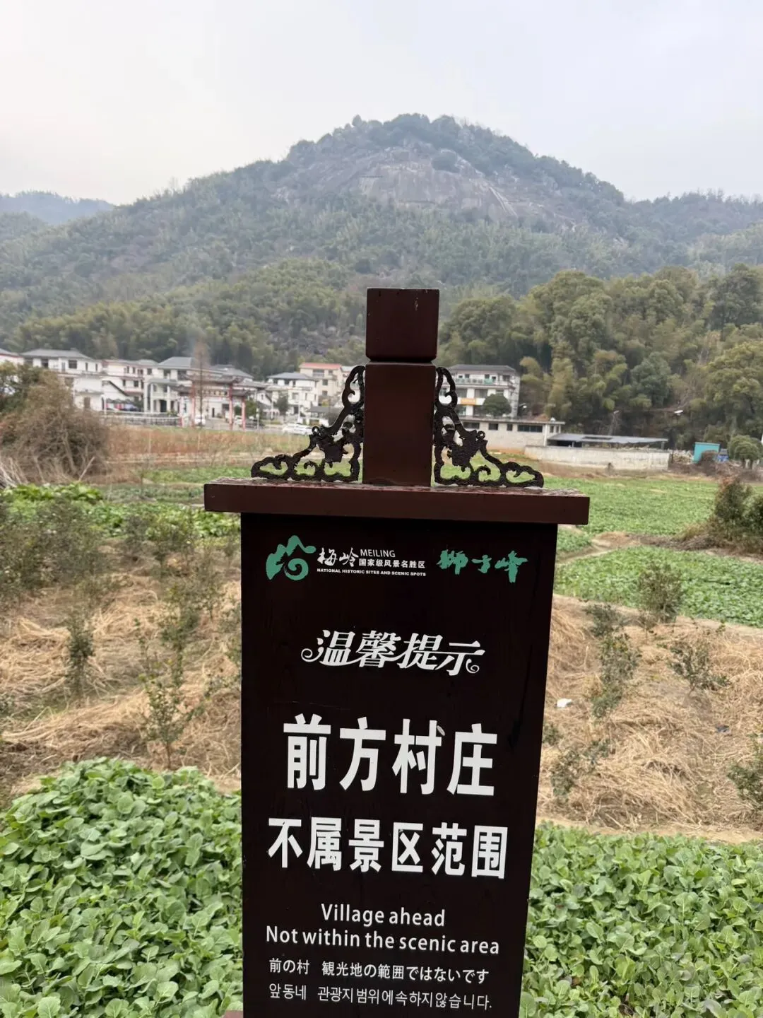 狮子峰据说这些年才开发。现在的狮子峰是近二三十年开发的景区,古代属梅岭(西山)一隅,没有独立成名,文人多咏 “西山”“梅岭”“洪崖”,不专写此峰。我们是爬完狮子峰来到狮子峰下面的村落的。看到这里叫——狮峰石壁村。石壁村门口的石雕动物像。下面是大象。上面没认出来。狮峰石壁村门口的桥上四只石雕动物像,守着村口。不知道啥寓意。村子就坐落在狮子峰脚下,可以直接看到狮子峰的大片石头。村里的石槽,以前用来喂猪喂牛喂鸡,蓄水,种菜种花都可以。村里的小房子,看起来很别致,这里养老也是不错的所在。我们在下山接近村子的后山腰,看到很多墓碑,想来也是这村里的。这是杨姓。狮子峰的logo,有点意思,这是飞云渡,据说这是江西省最长的铁索桥。注意到上面两张图的“梅岭”两字在logo上的体现是不一样的,一个繁体字“嶺”,一个是“岭”,梅岭和梅嶺。