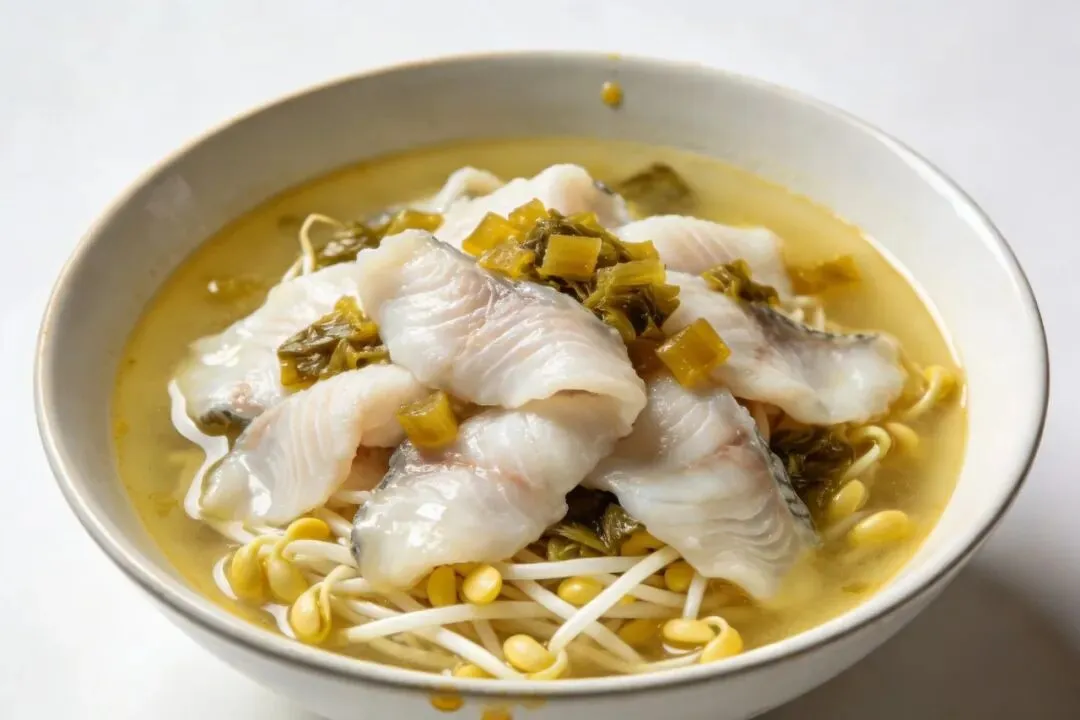 主荤:酸菜鱼(巴沙鱼片90克、黄豆芽40克、酸菜20克)