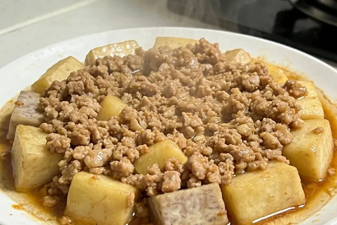 花荤:芋头炒肉(芋头80克、瘦肉丝20克)