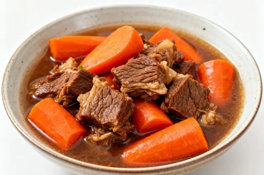 主荤:红萝卜烧牛腩(红萝卜90克、牛腩60克)