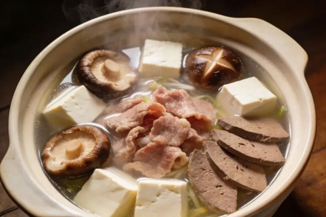 主荤:鹌鹑蛋烧肉(鹌鹑蛋80克、五花肉块50克、瘦肉块20克)