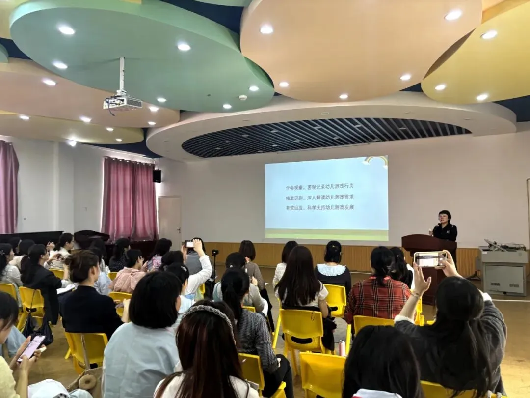 活动开篇,郝荣兰老师带来《自主游戏中的观察记录与有效支持》专题讲座,围绕“观察-记录-解读-支持”闭环思维展开深度讲解,清晰梳理自主游戏观察的实践要点,为参研教师明晰可落地的实操路径,夯实专业理论根基,破解观察实践困惑。