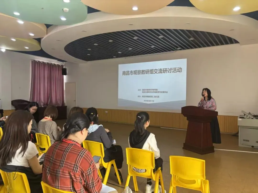 为深入贯彻《幼儿园教育指导纲要(试行)》《幼儿园保育教育质量评估指南》精神,切实提升全市幼儿教师自主游戏观察与专业支持能力,2026年4月17日,由南昌市教育科学研究院、南昌市教育学会学前教育专业委员会主办,新建区第二幼儿园承办的南昌市观察教研组交流研讨活动顺利开展,全市游戏观察教研组全体教师齐聚一堂,共学共研,互促共进。