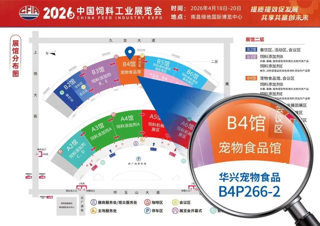 4月18日,备受行业瞩目的2026中国饲料工业展览会于南昌绿地国际博览中心盛大启幕。华兴宠物食品旗下力狼品牌重磅亮相,携全矩阵核心产品在B4馆宠物食品展区精彩登场,在这场行业顶级盛会上绽放品牌光彩。