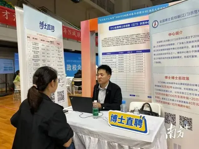 值得一提的是,现场专门设立了“博士博士后招聘专区”和“博士洽谈区”,由全国博士后创新(江门)示范中心精准匹配超1000个博士博士后需求,并配套优厚补贴政策。同时设有“湾区项目”咨询展位,港澳高校共释放448个项目岗位,来粤做博士后、赴港澳联合培养,每人可享粤港澳联合资助72万元,吸引了大批高学历人才驻足咨询。