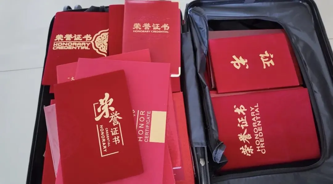 如今,徐建英已获得了30余项奖,发表了60余篇作品,包括散文、诗歌、小小说。记者在她家看到,一个行李箱里全是她的荣誉证书。此外,她的阅读量也很大,“上百本肯定有了”。