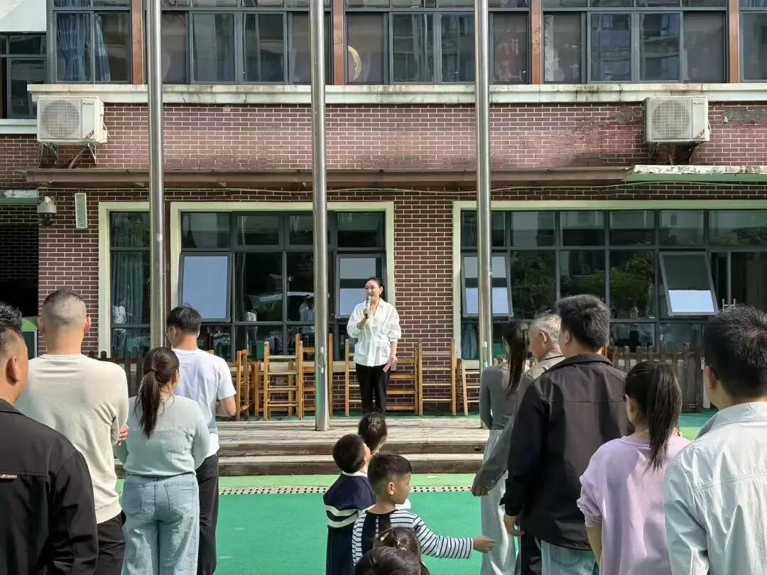 活动伊始,贾园长为本次亲子活动致辞,表达了对孩子们的美好祝愿与对家长参与的感谢。随后,超人老师带领全体家庭开展亲子热身游戏,快速活跃了现场氛围,拉开了本次亲子活动的序幕。