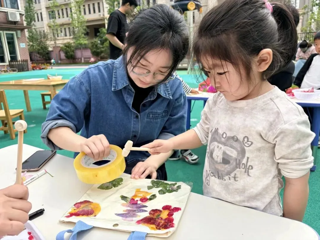 春日自然DIY环节开始啦!树枝、花朵、小树叶,都是大自然藏在春天里的小惊喜。孩子们和爸爸妈妈一起,用收集来的春日材料制作树叶面具、DIY风筝、植物拓染,大手牵小手,把春天的模样亲手定格下来,在合作与创作里,感受自然的美好,也收获了满满的亲子时光。