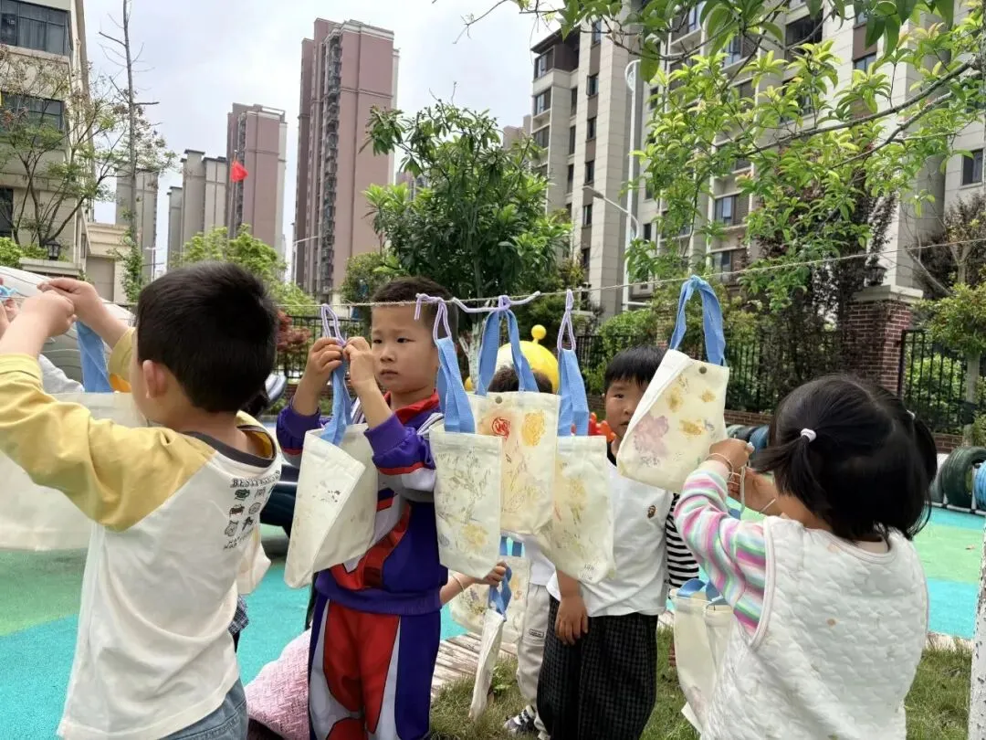 当当当当!我们的春日作品大公开啦!孩子们戴着自己DIY的面具,神气十足地摆起了pose,印着花草的拓染布袋和亲手制作的风筝,都是孩子们和春天的专属小约定!每一件作品都独一无二,藏着满满的奇思妙想,可爱值直接拉满!一张张笑脸、一个个温馨的瞬间,被镜头永久定格,成为这个春天最珍贵的回忆。