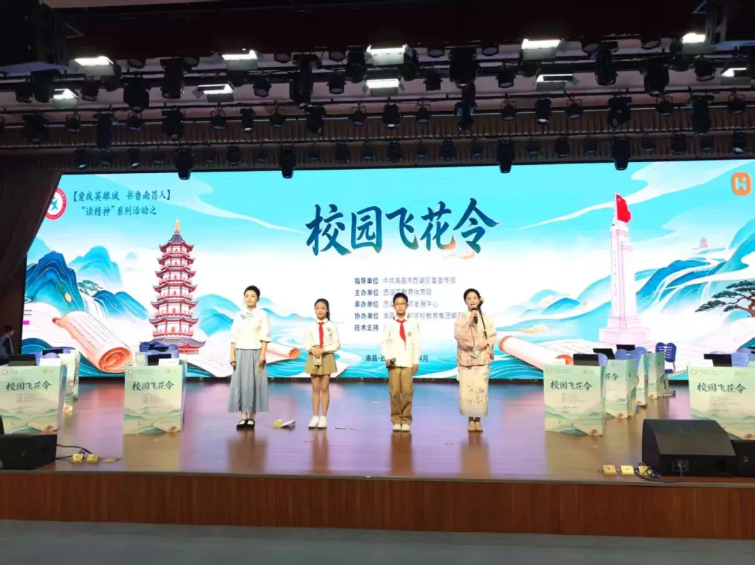 2026年4月 17 日,南昌市西湖区中小学校园飞花令诗词大赛决赛在南昌市松柏学校教育集团朝阳校区圆满落幕。本次竞赛是西湖区“阅名人·知名城·扬精神”全民阅读大会的系列活动之一,以诗词为纽带,传承中华优秀传统文化与红色文化,助力全国第五届全民阅读大会,让经典诗词走进校园、润养童心。