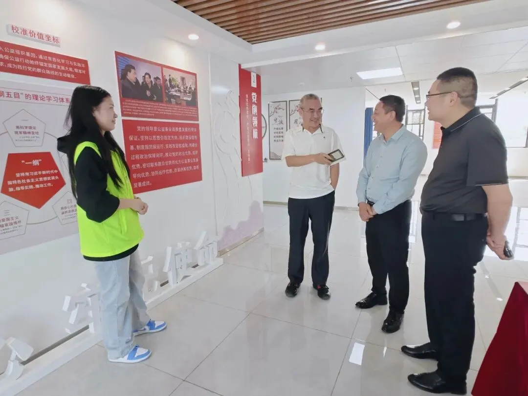 王家斌一行先后参观了南昌县新时代文明实践中心、微爱公益乡村振兴示范馆、微爱先锋驿站等活动阵地,详细了解了协会在志愿者队伍建设、品牌项目打造、服务活动开展及日常运行机制等方面的具体做法与成效。