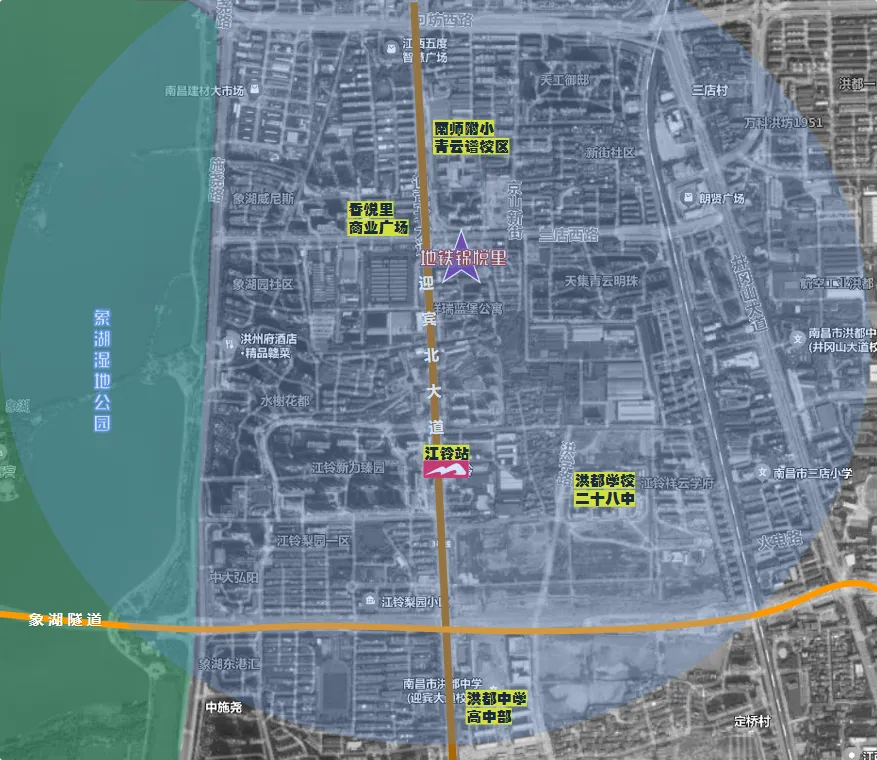 项目就在南昌主城青云谱,离地铁3号线江铃站很近,走路就能到。开车走南一环、象湖隧道,去朝阳、红谷滩都很方便。