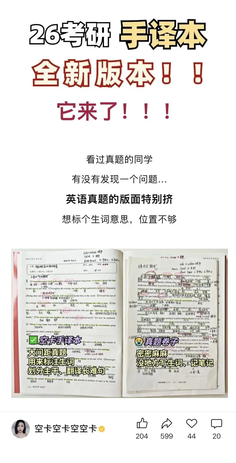 9月份开始每天刷1套阅读真题,我买的是卡子姐的真题手译本,从2010年刷到2025年,大概刷了2遍,模拟题不推荐买,真题是最靠近出题人思路的,搞懂每一个选项的考点和文章中的词汇,阅读基本上可以在35分左右。