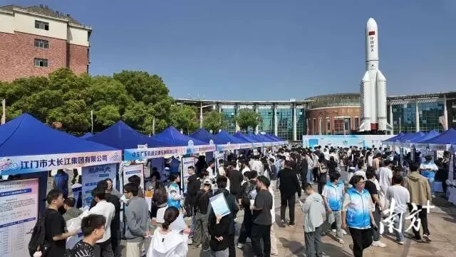 本次南昌航空大学专场聚焦智能制造、新材料、新能源、航空装备等南昌航空大学优势专业领域,线下共组织82家优质用人单位参会。其中,半数企业来自江门市,主要包括江门市大长江集团有限公司、中车广东轨道交通车辆有限公司、广东新会中集特种运输设备有限公司等重点企业。