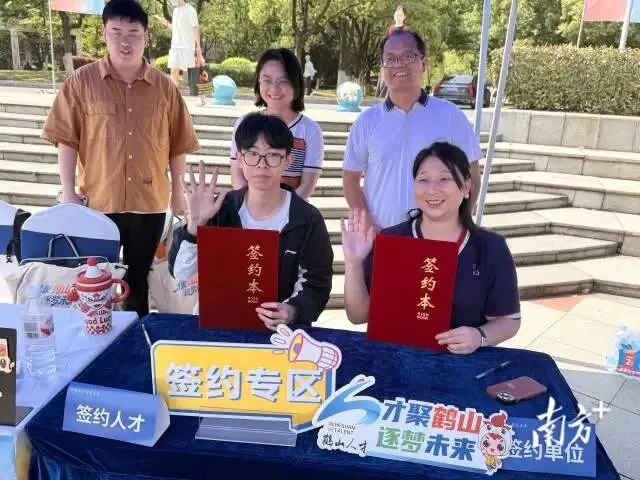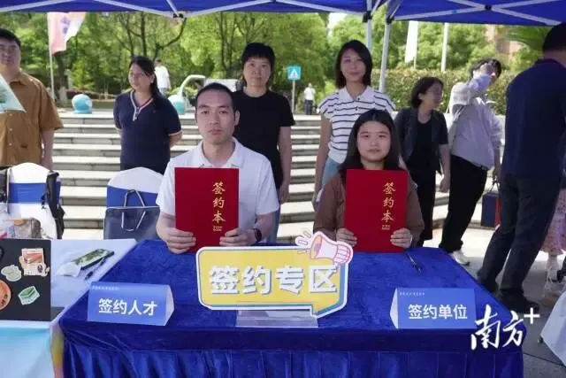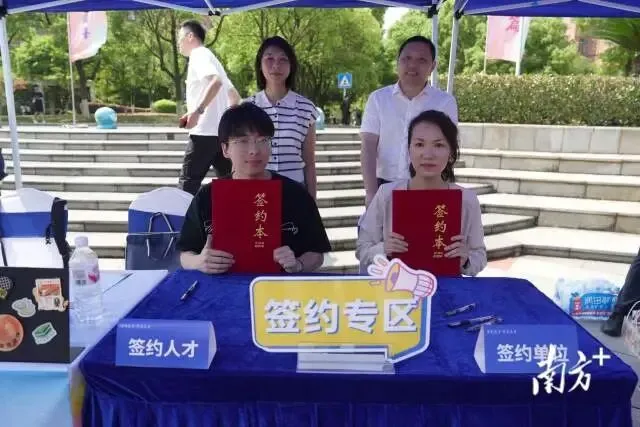 中车广东轨道交通车辆有限公司也现场与3位硕士毕业生签约。广东绮力智能装备有限公司招聘负责人介绍:“我们今天带来了技术部的研发实习工程师、机加部的实习工程师岗位,主要为企业后续发展作人才储备。我们现场找到了对机床了解,同时具备CAD、编程能力的应届毕业生,所以果断现场签约!”企业与来自南昌航空大学智能制造专业的应届毕业生周攀现场签约。