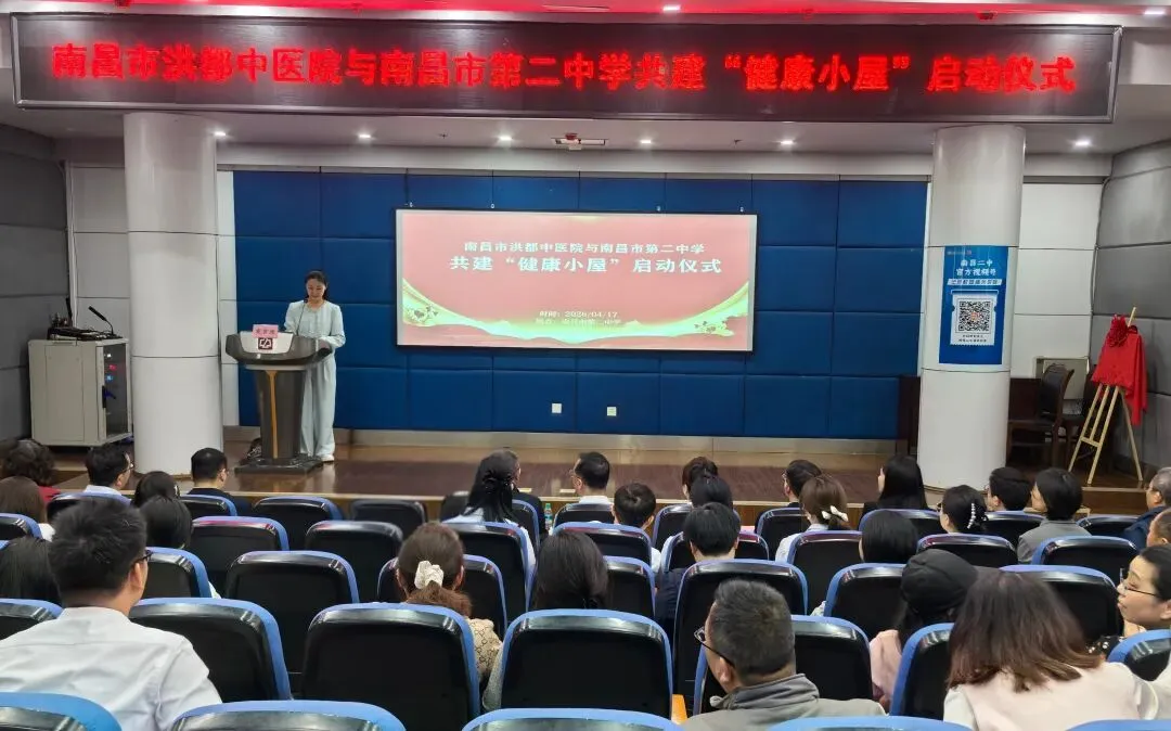 春和景明,万物向新。4月17日下午,南昌二中与南昌市洪都中医院共建“健康小屋”启动仪式在绿茵路校区行政楼二楼报告厅举行。南昌市总工会三级调研员钟东,南昌市洪都中医院党委书记裘国亮、党委副书记万青,工会副主席田烨,针灸科主任胡秀武;南昌二中党委书记万瑛,党委委员、副校长徐强、唐思峰,党委委员、副校长、工会主席章易明,工会副主席杨君红等领导嘉宾共同出席,与教职工代表一同见证这一公益健康服务项目正式落地。