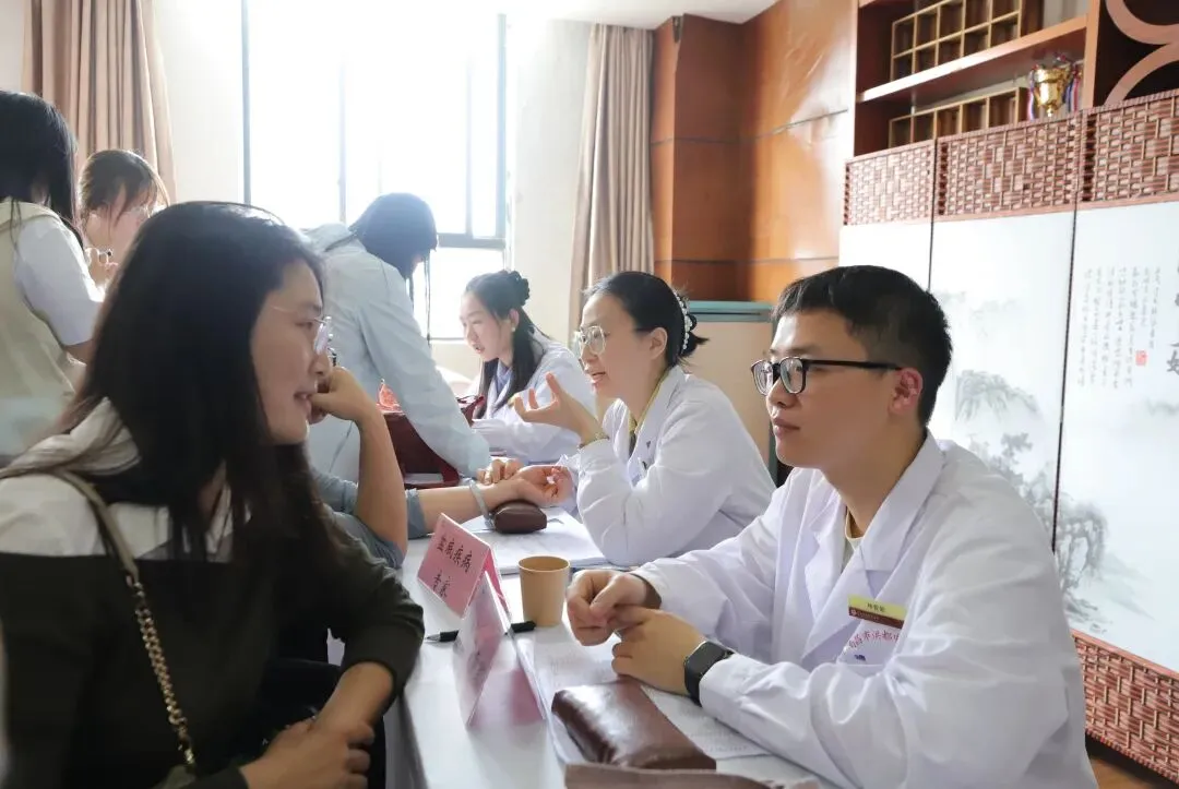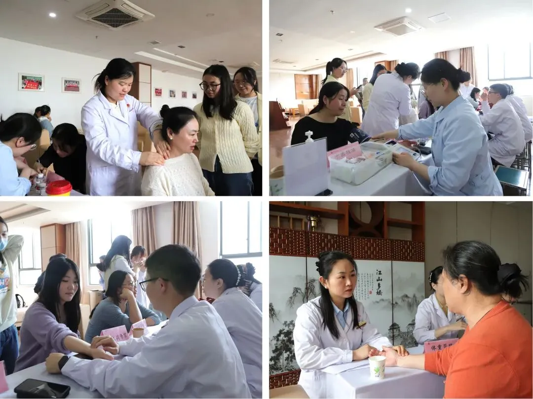 与此同时,六楼咖啡屋内暖意融融——首场教职工义诊活动温馨开启。现场精心准备了养颜茶、解忧助眠茶、祛湿茶、清咽茶等多款中药养生茶饮,老师们边品茶边向专家咨询健康问题。义诊区提供免费的血压、血糖检测,并开设了治未病、肩颈腰痛、体重管理、盆底疾病等专家门诊。医护专家充分发挥各自专长,为教职工把脉问诊、健康咨询、亚健康调理,还为有需求的老师提供了针刺、推拿、耳穴压豆等中医药特色治疗。