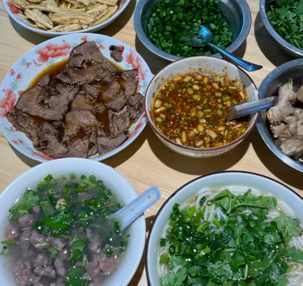瑞金的吃,不是花样多,而是舒服。早上可以找家本地粉店,来一碗瑞金牛肉汤粉,汤头清,牛肉薄薄几片,胡椒一提,汤一喝,人就醒了。再配个艾米果,外皮软糯,带点草木香,咬开是笋丁或肉末,热气往上冒,手都跟着暖了。