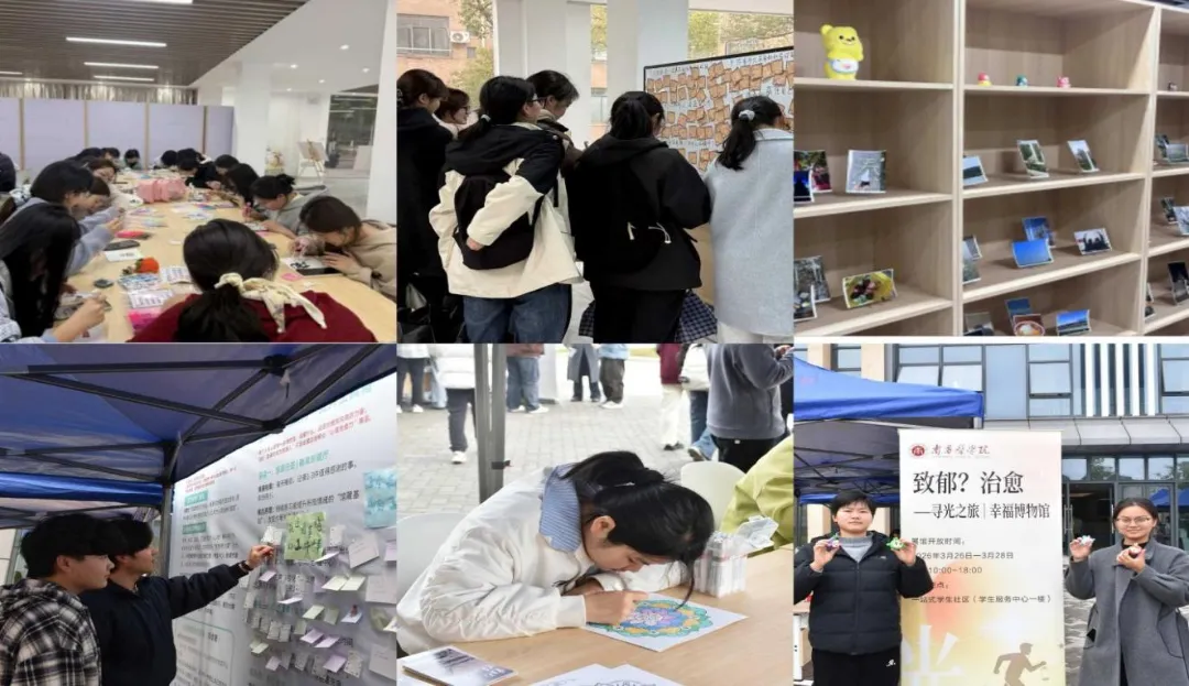 3月25日至4月2日,“幸福博物馆”在一站式学生社区正式开放,设“幸福实物展”“幸福影像厅”“幸福制造工坊”“幸福时光邮局”“回声墙”五大展区。同学们通过参观、创作、书写与分享,体验积极情绪的力量,培育心理韧性。活动现场温馨有序,成为学生放松身心、积蓄正能量的心灵驿站。