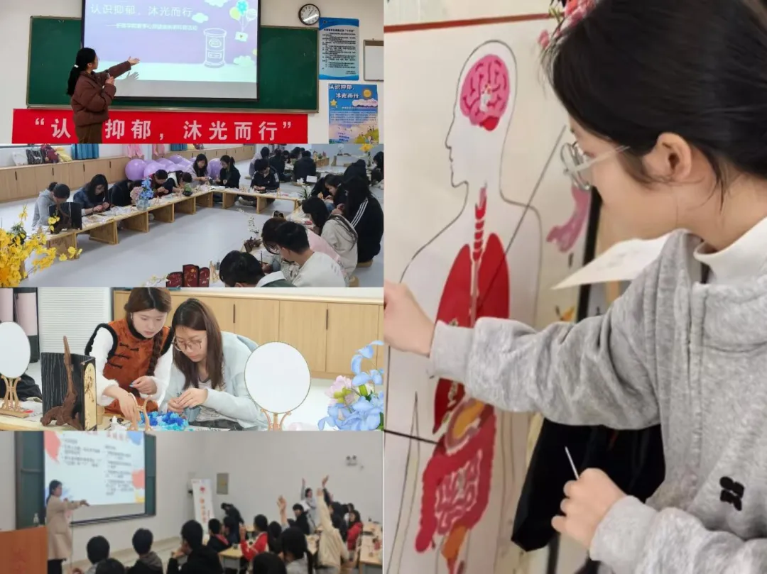 护理学院举办“认识抑郁,沐光而行”心理宣讲进班级活动,普及抑郁症知识与自我评估方法;检验医学院开展“初心领航,春风解郁”主题班会示范课,通过角色扮演、谣言粉碎机等环节,提升学生心理互助能力;中西医结合学院举办"食愈身心,健康同行"食疗与心理体验活动,帮助学生掌握中医情志调养知识,激发专业学习热情,提升自我心理保健意识,培养健康生活方式;药学院开展“心向暖阳筑芳华”心理健康主题宣讲活动,聚焦大学生常见学业焦虑、自我内耗调适等多项心理痛点,普及科学心理健康常识与情绪疏导技巧;口腔医学院开展“以美育心·非遗传韵”实践活动,通过摄影记录、视频创作与非遗手工制作,引导学生在艺术体验中释放情绪、疗愈心灵,以美育赋能心理健康。