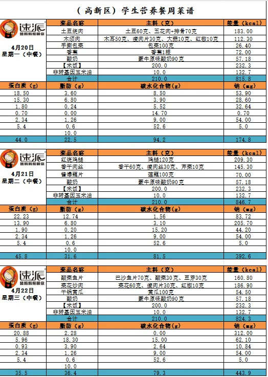 南昌县莲塘第六学校4月20日-4月24日一周菜单