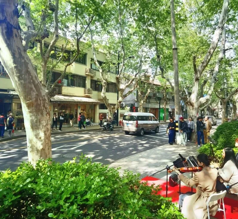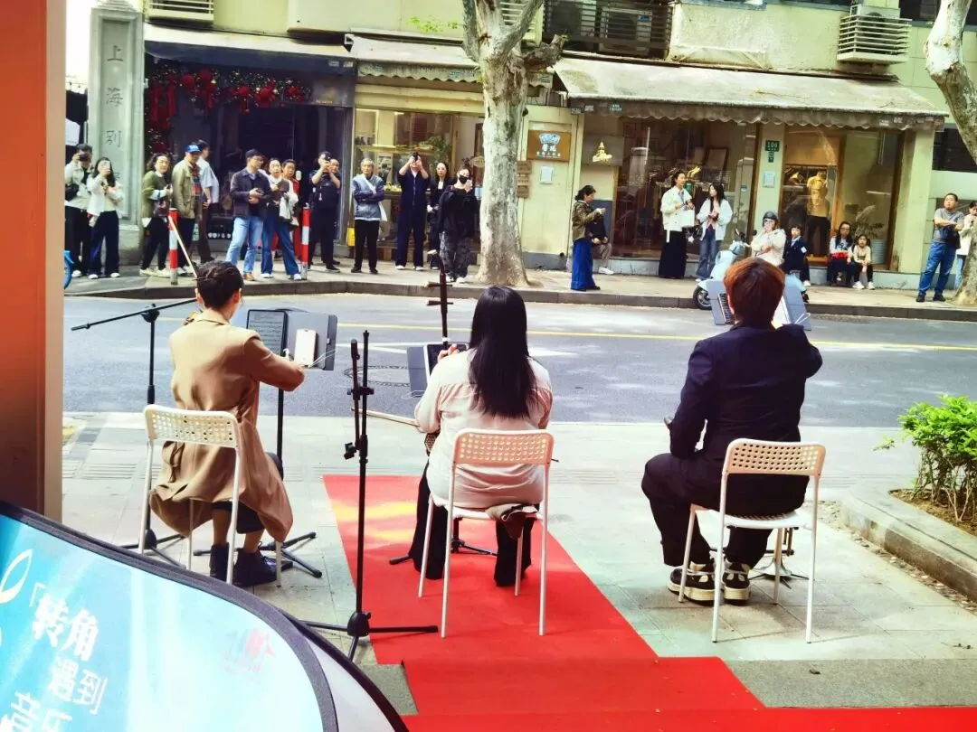音乐就流淌在门廊下、花丛间,成了路过行人最惊喜的偶遇。有人被旋律绊住脚步,靠在廊柱上静静聆听;有人跟着节奏轻轻晃着身子,把日常的疲惫都揉进音符里;把南昌路的春日浪漫,定格成了朋友圈里最亮眼的风景。每一首歌曲,都是行走的多巴胺,让这个普通的周六下午,变成了满是治愈与欢喜的限定美好。