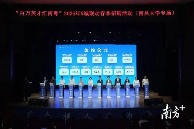 “百万英才汇南粤”2026年N城联动春季招聘活动(江西专场)首场招聘圆满收官。接下来,广东“引才专列”将继续驶入江西财经大学、南昌航空大学,以及江西农业大学、江西师范大学、华东交通大学、江西理工大学、赣南科技学院等高校,向广大青年才俊发出最诚挚的邀请。