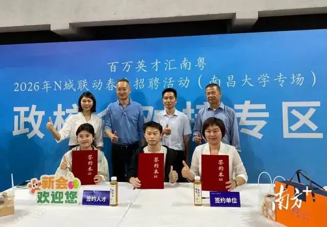 来自南昌师范学院的韩煜婷则直接与开平金山中学签下了就业协议。“这次过来应聘,我切实感受到广东对人才的重视与诚意,‘百万英才汇南粤’不仅是一句口号,更体现在解决了我们应届毕业生的诸多后顾之忧,提供了可长远发展的平台。”她表示,作为师范生,她看重学校的育人理念与平台空间,“广东能给予年轻人的不只是眼前的待遇,更是未来的成长潜力,这也是我最终选择从江西奔赴江门的原因。”