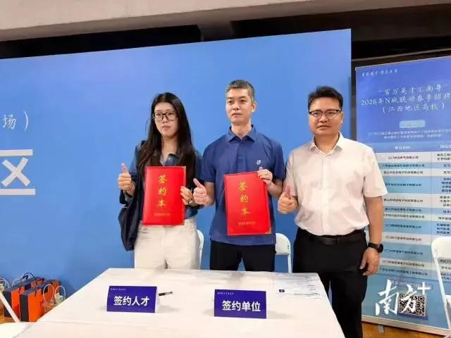 招聘会现场热度直接转化为实质成果。来自东华理工大学的张丽琳与江门市宝士制冷有限公司签下了销售业务岗意向书。作为一名江西姑娘,她对广东的城市有着天然的好感:“今天这场招聘会让我了解到江门是一座宜居宜业的城市,我非常向往到那边工作生活。”