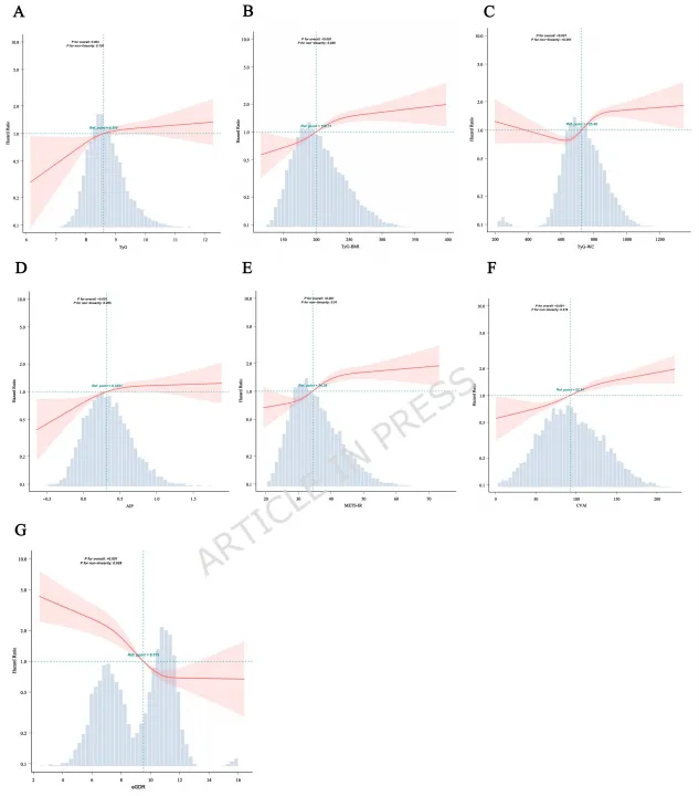 3.给出临床切点:利用ROC曲线确定了识别高危人群的eGDR最佳切点(7.64),并通过非线性分析找到了风险趋于平坦的治疗目标值(11.82),形成了“筛查-干预”的两级框架。