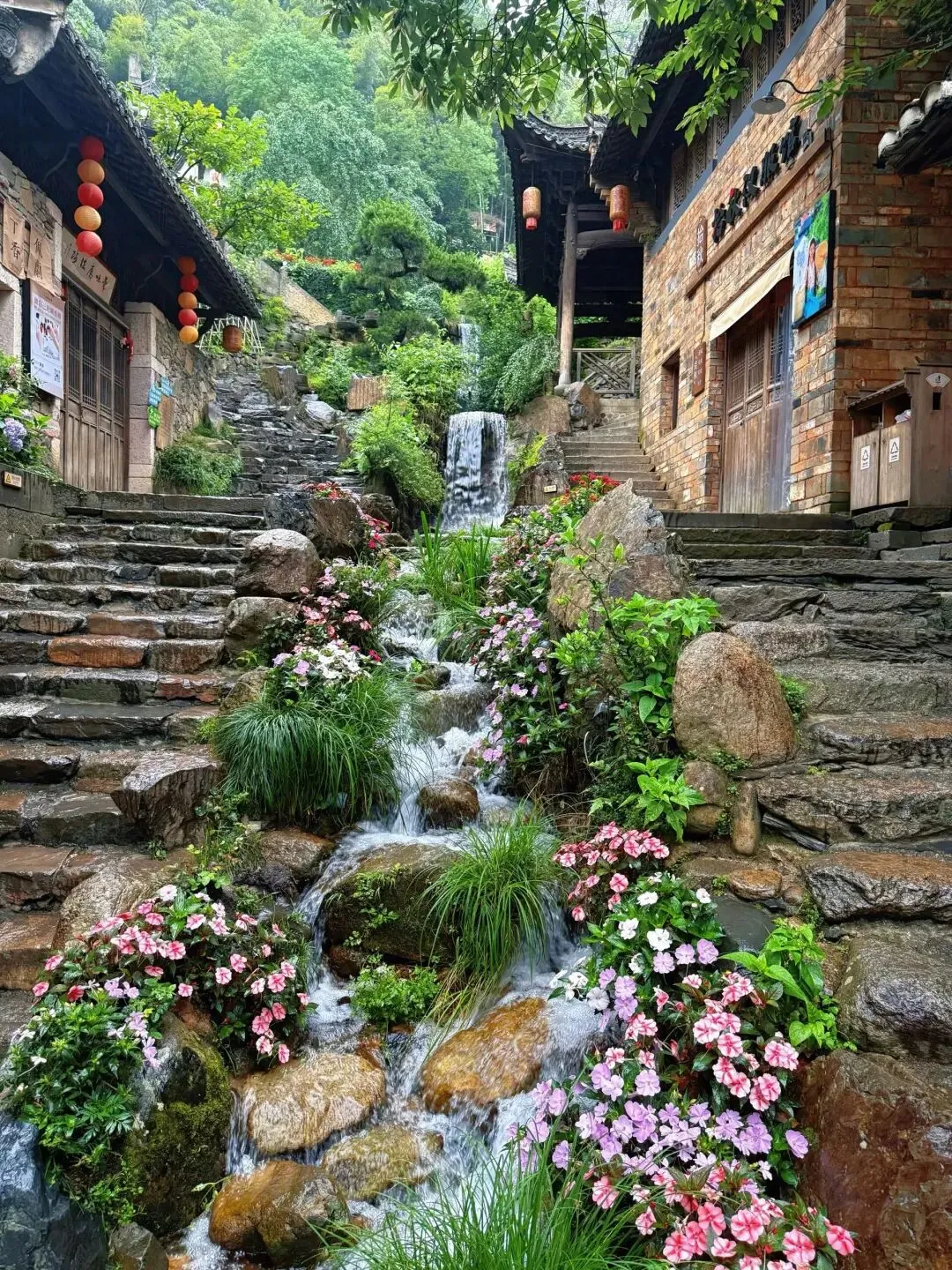 过了青云桥,再踏青云梯,从此鸿运当头。【寻仙路】我们现在走的这条栈道叫寻仙路,既有青石板路,也有峡谷栈道,顺应天然的地形,曲折回转,蜿蜒在九牛峡谷之中。【廊桥】沿河而建是典型的江西风雨廊桥的形态,桥体采用了抬梁式架构,在立柱上架梁,梁上又抬梁,层层叠落一直到屋脊,各个梁头上再架上檩条用来承托屋椽,结构和工艺十分复杂。