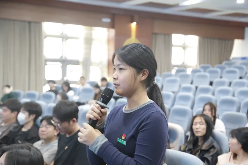 在宣讲互动交流环节中,青年观众踊跃举手,结合自身学习与实践分享心得体会,与主讲人深入交流。真挚的思考、热烈的共鸣,让革命精神在双向互动中入脑入心,让信仰力量在思想碰撞中赓续传承。