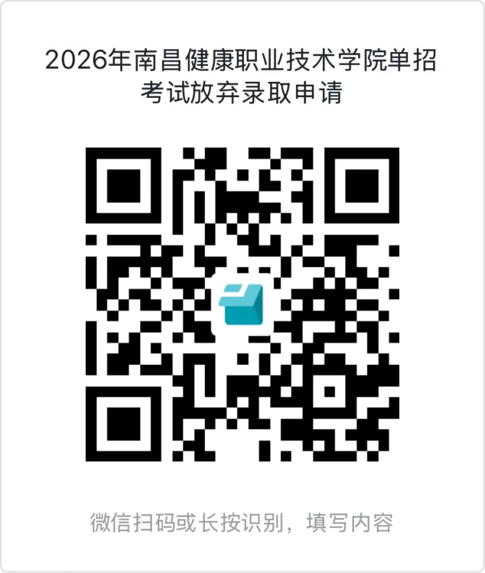 若拟录取考生自愿放弃我院高职单招录取资格,请于2026年4月21日16:30前,征得父(母)亲同意,在线填写并上传《2026年南昌健康职业技术学院单招考试放弃录取申请》。