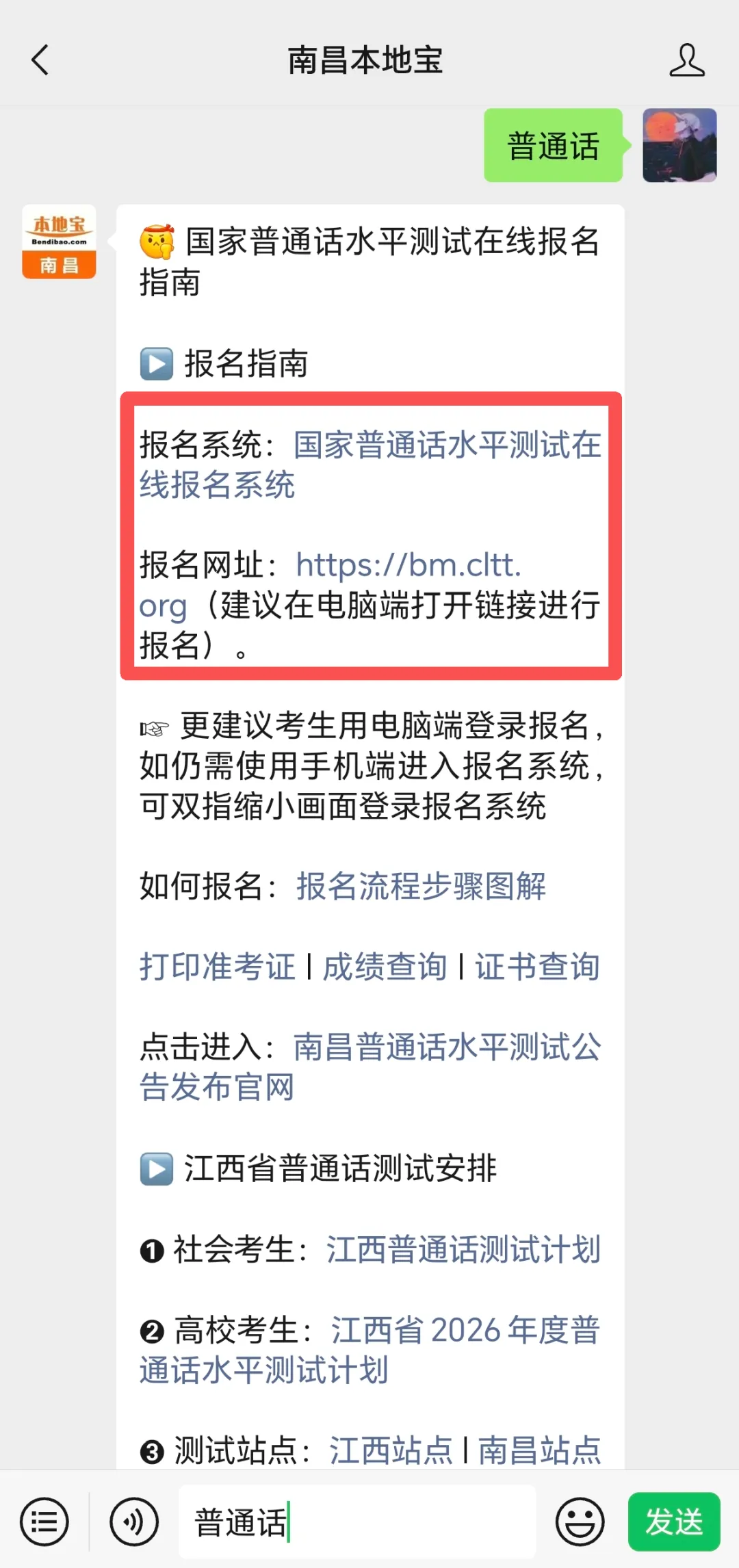 南昌本地宝推出非常多的功能,进入【南昌本地宝】公众号聊天对话框里,点击发消息,在对话框内输入并发送对应的【关键词】即可获取相关内容。