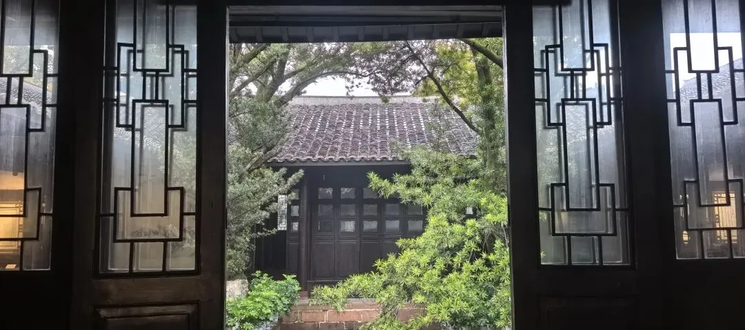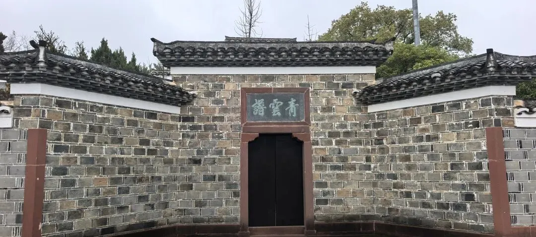 踩着湿漉漉的石板,沿湖稍行几步,只见一个黑瓦灰墙的内八字门面,暗红的石门框,上书“青云谱”三个青色大字,这便是正门,双门紧闭。旁有差不多的一个门面,可以正常通行,上面题字为“八大山人纪念馆”。