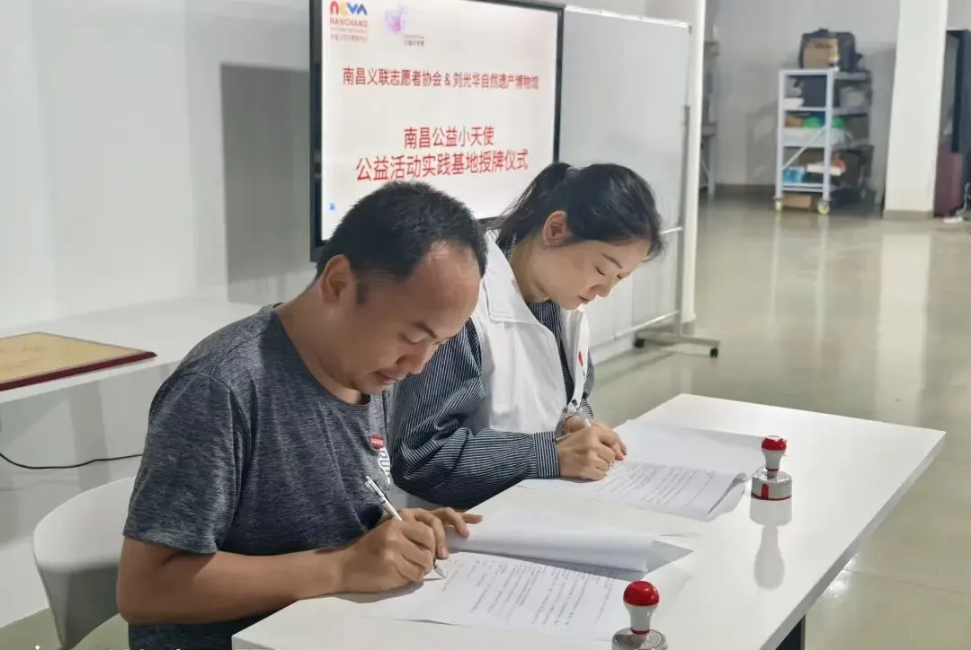 4月19日下午,南昌义联志愿者协会与南昌市刘光华自然遗产博物馆公益活动实践基地签约及授牌仪式在刘光华自然遗产博物馆隆重举行。双方代表、南昌公益小天使及家长共50余人共同见证了这一重要时刻。