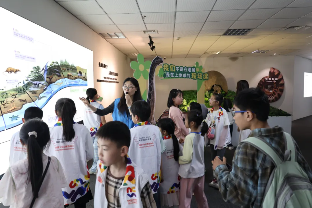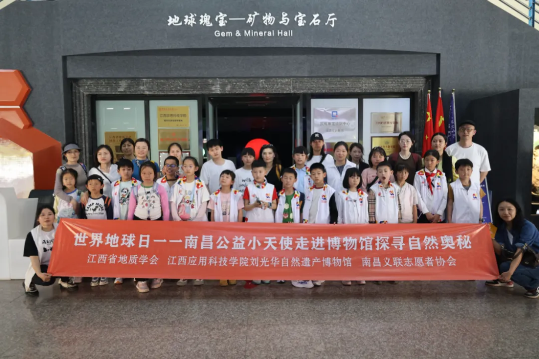 当天,南昌公益小天使参观了博物馆。讲解员带领小天使穿过矿物晶体展区、古生物化石展区等区域。色彩斑斓的萤石、巨大的恐龙骨架、精美的菊石化石等展品惊叹不已。