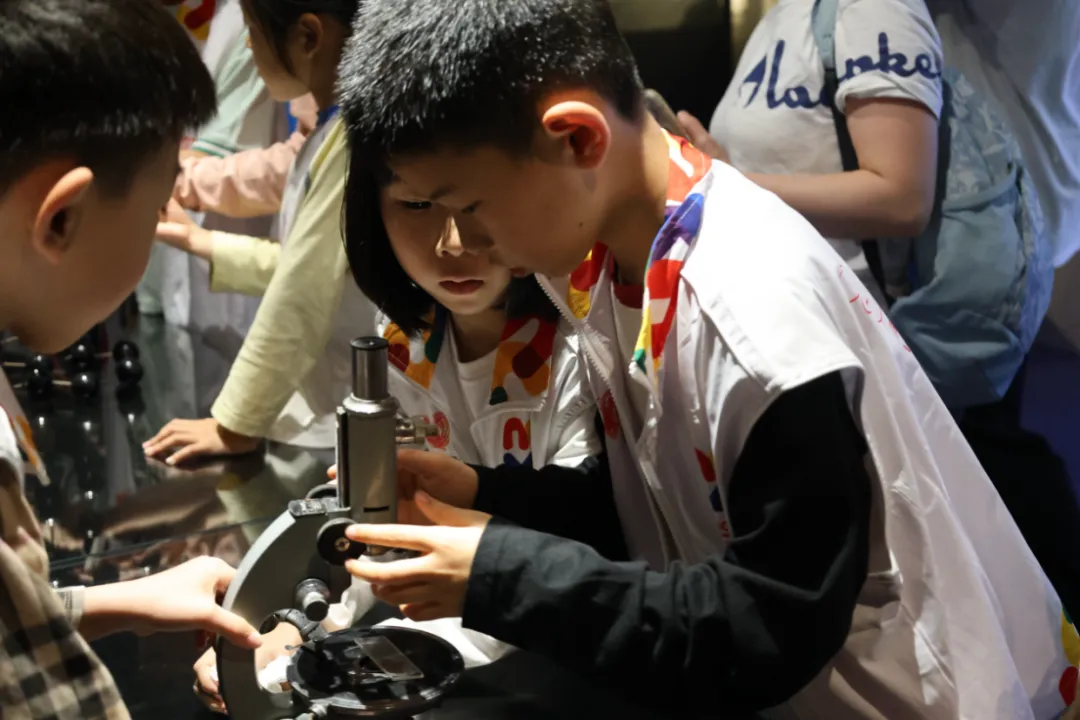 在工作人员指导下,小天使轮流操作显微镜,观察矿物薄片和昆虫标本的微观结构。通过亲手操作,他们不仅学到了科学知识,更点燃了对自然科学的好奇心与探索欲。