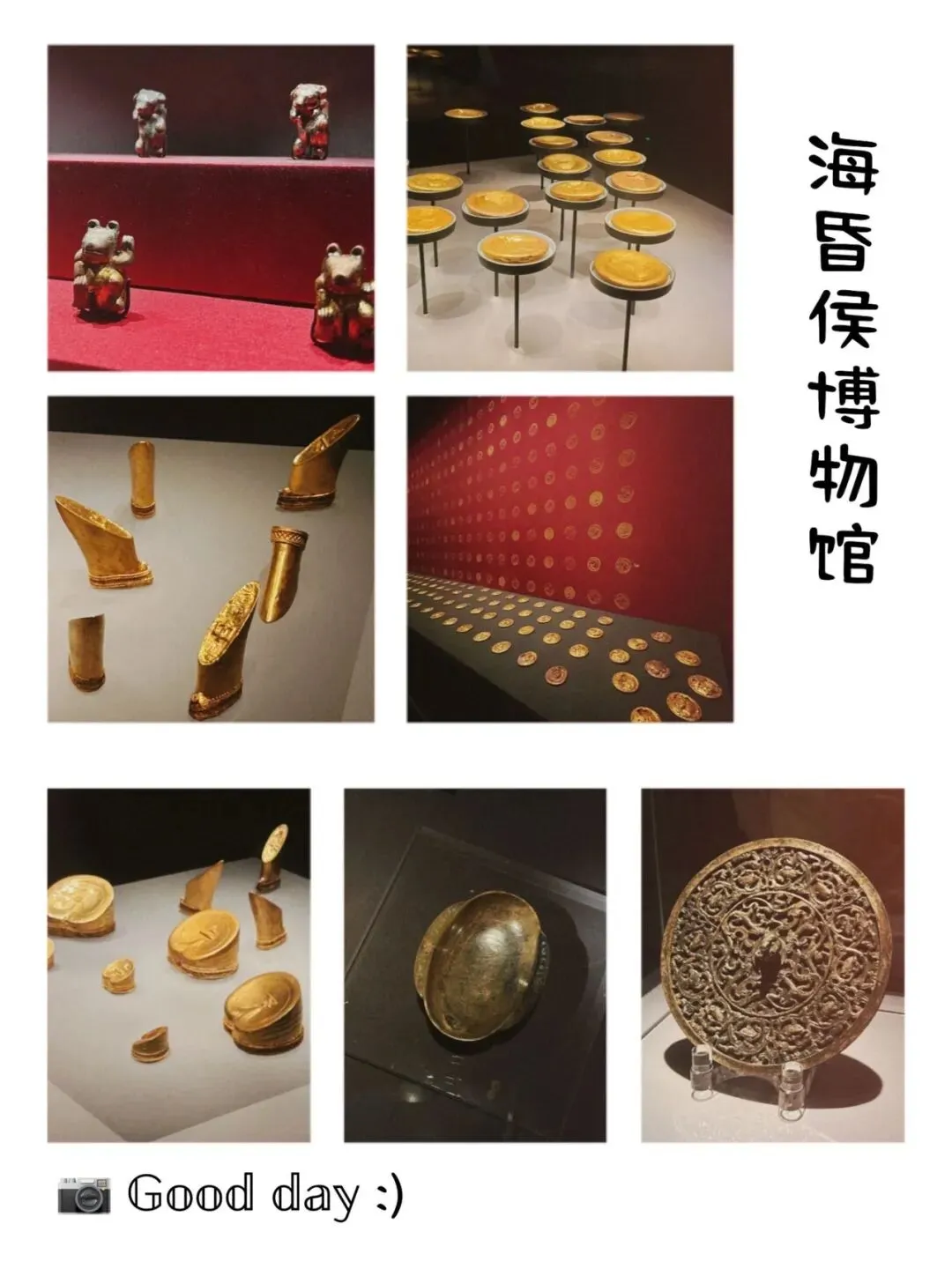 正值清明节那天,我们踏上了去海昏侯国遗址公园的旅程,乘坐666一行人一上车便已昏睡过去了。本着初生牛犊不怕虎的自信,我比较荣幸地充当着此次小组的讲解,在此也要感谢豆老师、《探索发现》栏目及海昏侯公众号的“零基础扫盲海昏侯”系列。刚入馆的时候,还在一本正经地讲解着,参观到一半,5人各走各的,用“乱花渐欲迷人眼”再贴合不过,这其中5人像是什么打听八卦的小组,这里听听这位讲解员(正规的)文物解说,那里打开豆老师及时提问,还有直接看旁边的文字解说……偶尔碰头时,几人相互交流一下信息,然后再去看看这个文物,也算是真正做到了在博物馆中学知识了。