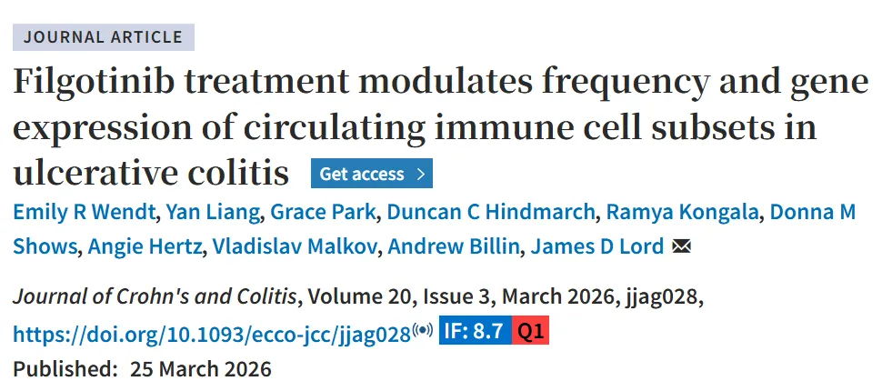 JCC:非戈替尼治疗可调节溃疡性结肠炎患者外周循环免疫细胞亚群的比例及其基因表达