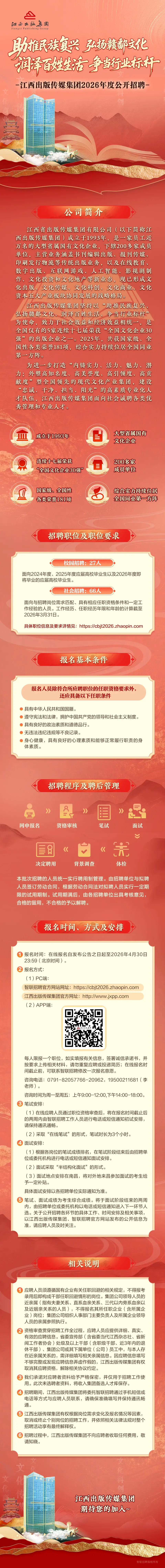 声明:素材来源官方媒体/网络新闻,“南昌招聘象”微信公众号刊载此文,旨在为求职者与用人单位架起桥梁。若有来源标注错误或侵犯了您的合法权益,请及时与我们联系,我们将及时更正、删除或依法处理。