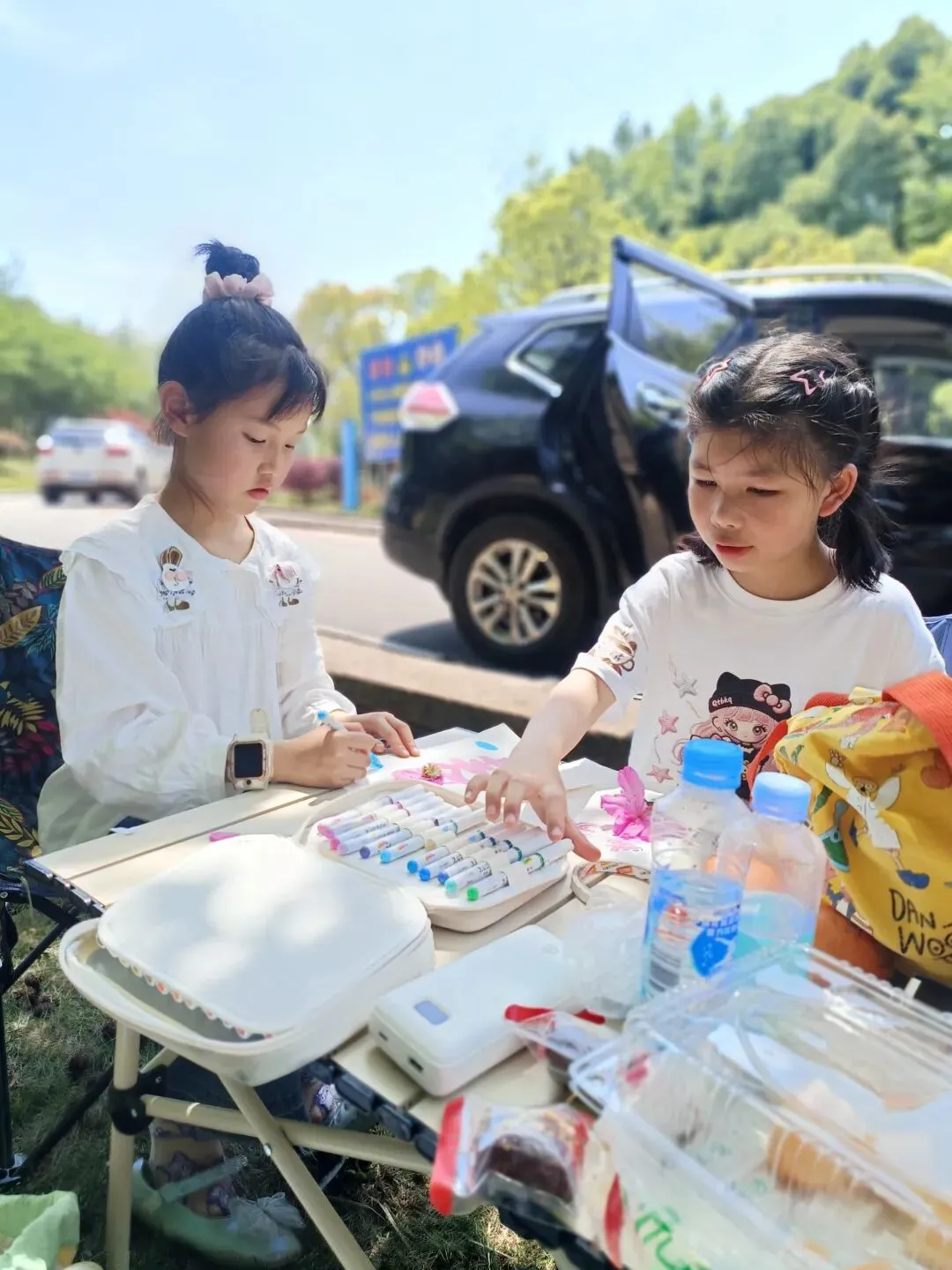太阳晒,蚊子咬,包里背着水、零食、驱蚊液、创可贴。要看着这个别摔了,听着那个别跑远了。要回答无数个“这是什么”“为什么”。要蹲下来系鞋带,要弯腰捡掉落的帽子,要追着给每个孩子擦汗。