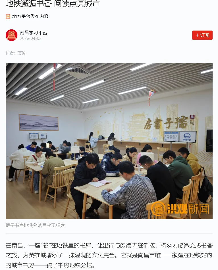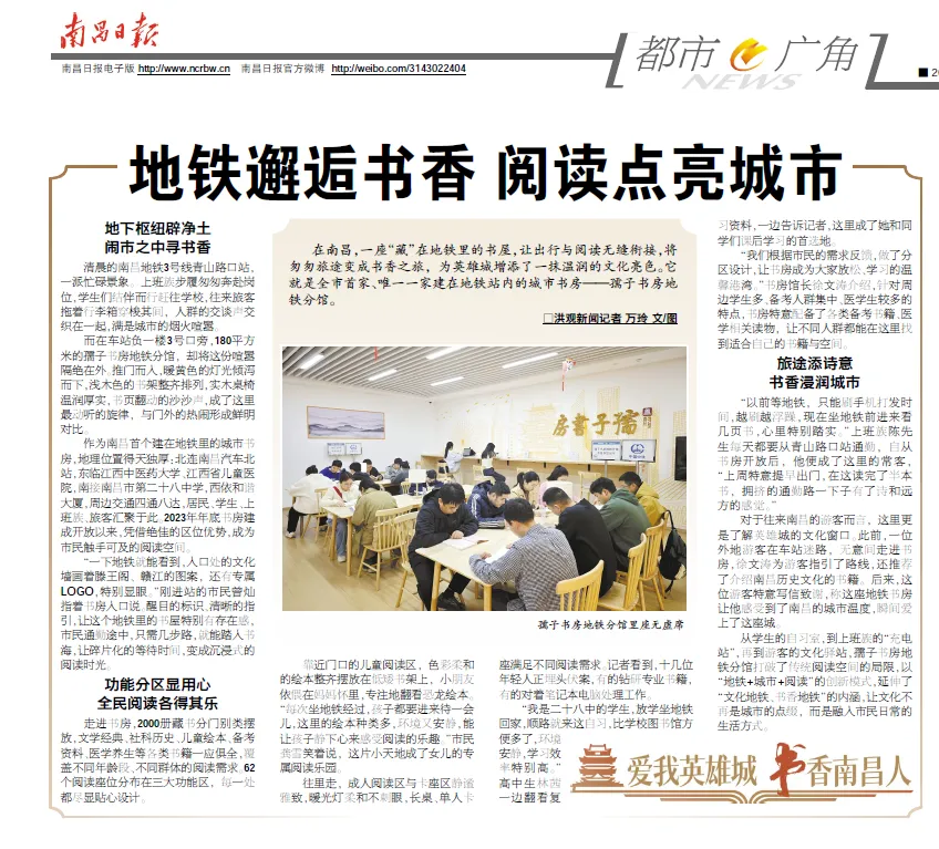 南昌电视台《每日新闻》:孺子书房地铁分馆:通勤路上的“诗和远方”