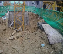 2.基坑周边大多为千枚岩回填土,土质松散,塔吊安拆人员违章将1.2吨重的塔吊配重块及电缆堆放在塔吊基坑坡顶边缘,造成塔吊基坑边坡土体受力发生突变。