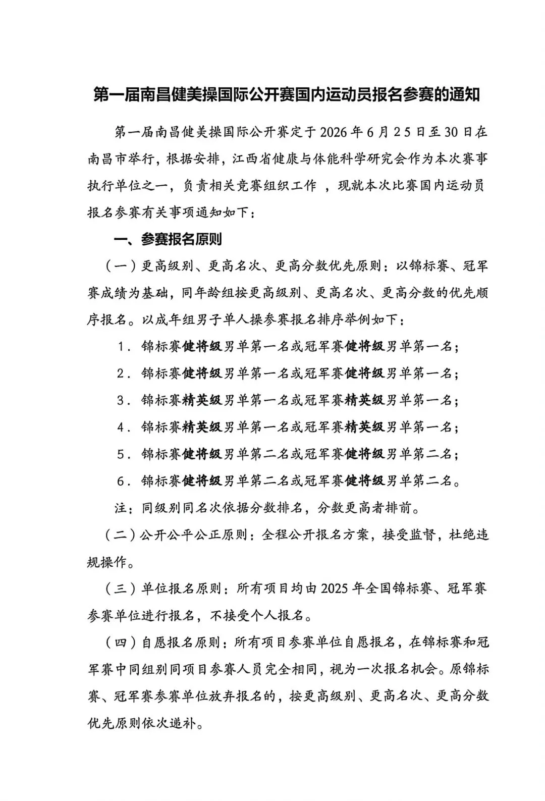 第一届南昌健美操国际公开赛国内运动员报名参赛的通知