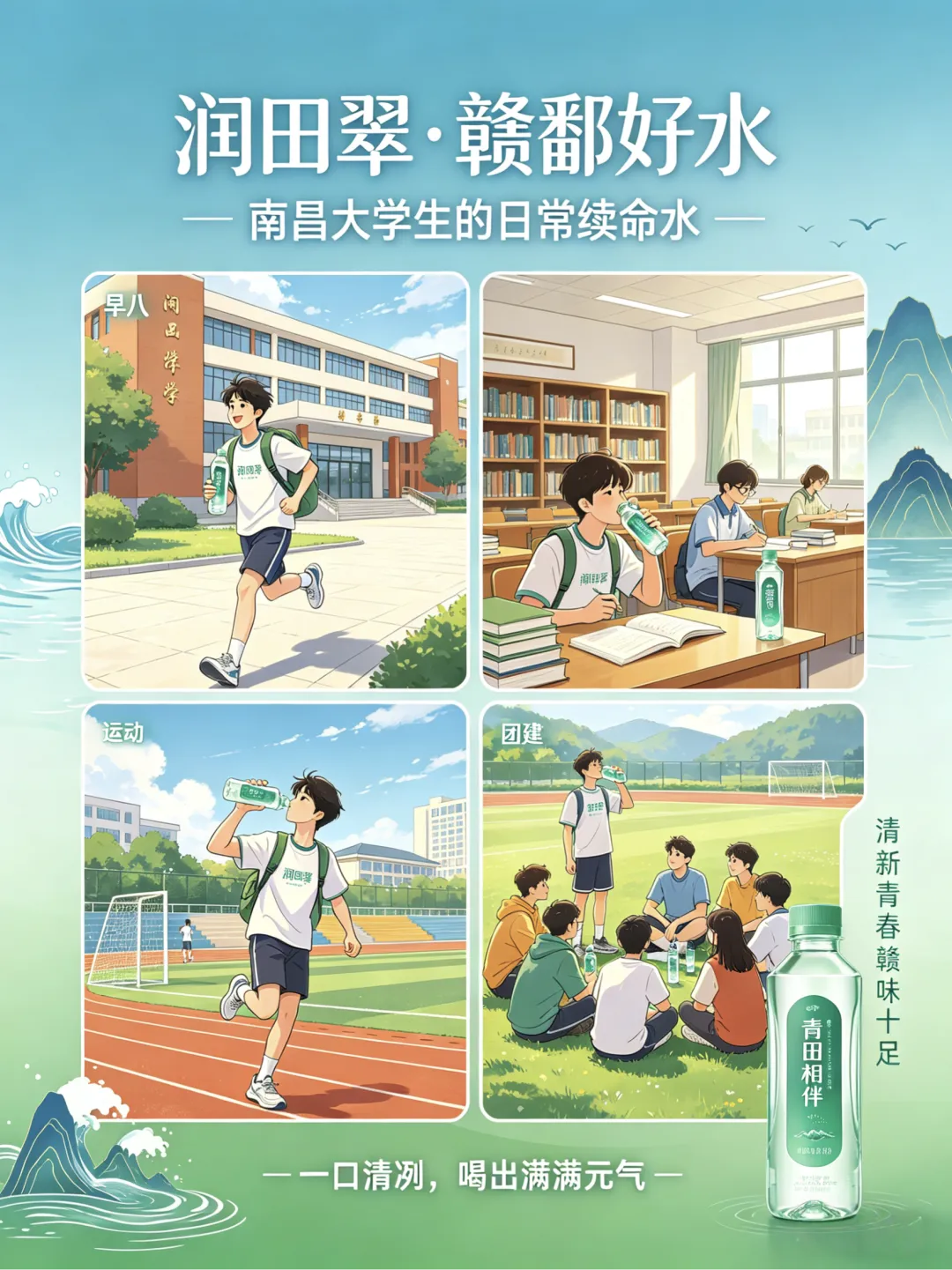从早八教室到深夜自习室,从团建操场到宿舍书桌,润田翠陪着我们走过南昌大学的每一段时光。这瓶来自赣鄱大地的天然好水,藏着本土品牌的诚意,也藏着我们校园生活里的小温暖。