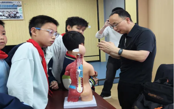 为进一步普及科学知识、弘扬科学精神,提升青少年科学素养,4月17日,县科协积极联系并成功争取市科协支持,邀请江西省呼吸疾病研究所特聘研究员、市科普报告团资深专家徐新平赴我县龙安学校开展专题科普报告,为广大师生带来一场内容丰富、生动实用的健康知识讲座。讲座中,徐新平结合多年临床经验和教学实践,从贴近生活的医学现象入手,以通俗易懂的语言为切入点,引导同学们关注日常生活中的健康细节。围绕“身体的神奇警报器”,他深入浅出地讲解了人体在出现异常时所发出的各种“信号”,帮助学生树立科学认识疾病、主动预防疾病的意识。在“认识生命和我们的身体”部分,徐新平系统介绍了人体结构及其运行机理,特别是对呼吸系统的组成、功能及其在生命活动中的重要作用进行了重点讲解。结合当前医学发展前沿,徐新平围绕“现代医学与人工智能”这一主题,介绍了人工智能技术在疾病筛查、影像诊断、健康管理等方面的应用,让学生们切身感受到科技进步对医学发展的深远影响,进一步激发了大家对科学探索的兴趣。