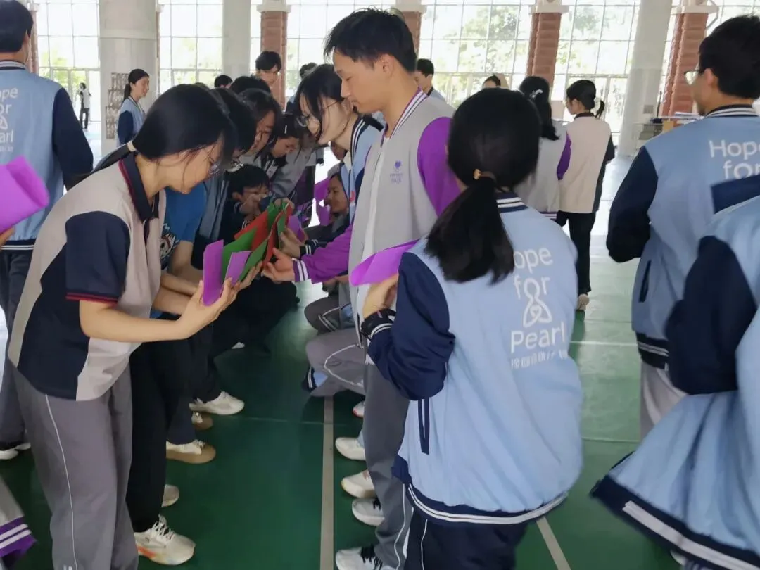 蟹王争霸、粘粘乐、踩气球……在刘健平、蒋德聪、周思彤三位伙伴的带领下,原本还有些拘谨的小珍珠们,在追逐与协作中渐渐放开自己,操场上满是笑声与欢呼声。陌生感在一次次互动中消散,心与心的距离,也在游戏里悄悄靠近。