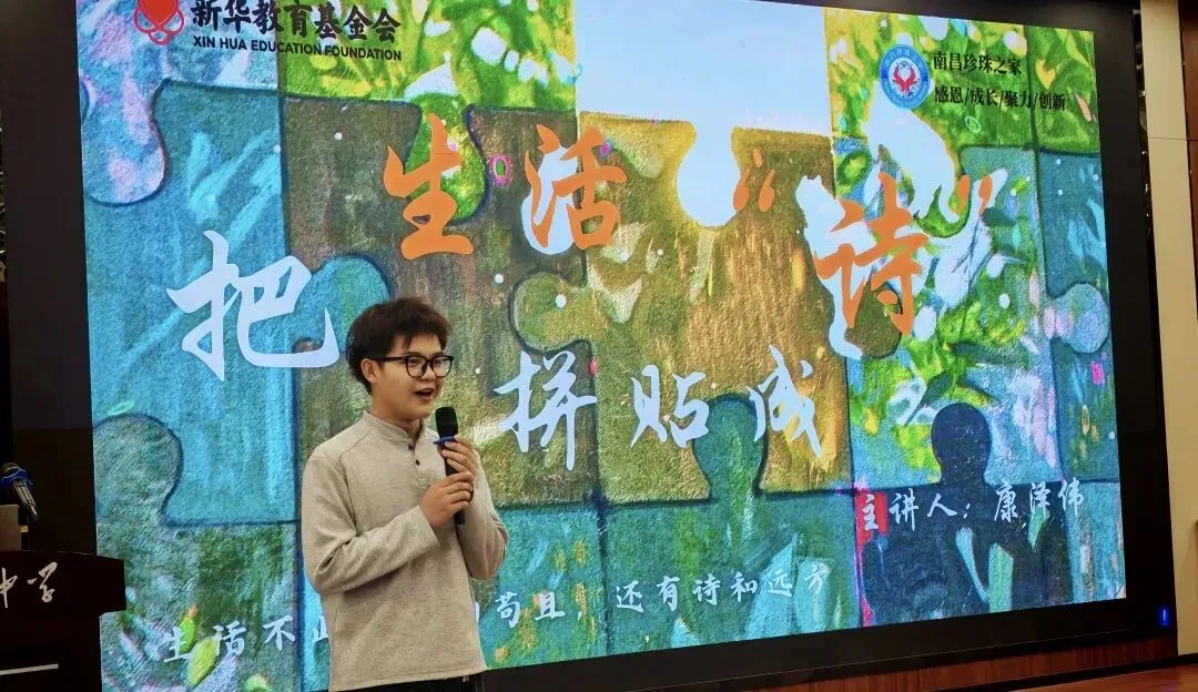 有人拼出了“赣江岸畔拾捡珍珠,书写繁花似锦新篇”,一字一句里,是对“珍珠生”身份的珍视,也是对前路的期许;有人写下“风携星子落肩头,我们并肩赴春秋”,把和伙伴们同行的温暖藏进了句子里;还有人拼成“以梦为马踏春风,不负韶华不负星”,字里行间都是少年人独有的意气风发;也有温柔的句子悄悄诞生:“赣江的风,吹过少年的诗行,也吹向远方的理想”,把在南昌、在珍珠之家的时光,都揉进了短短的几行文字里。